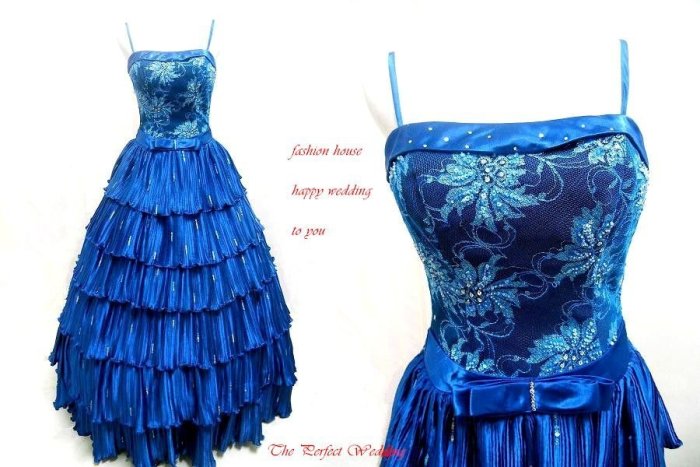 優寶購物《ubao.Tw》特貨品商城,黑貓宅配,取貨付款,【時尚屋婚紗禮服】藍色柔緞蕾絲繡花層次設計師造型款《二手禮服》~W335(歡迎預約試穿) | Yahoo拍賣