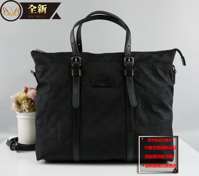 優寶購物《ubao.Tw》特貨品商城,黑貓宅配,取貨付款,☆優買二手精品名牌店☆ GUCCI 510332 黑色 皮革 尼龍布 肩背包 購物包 琴譜包 大方包 托特包 公事包 全新品 | Yahoo拍賣