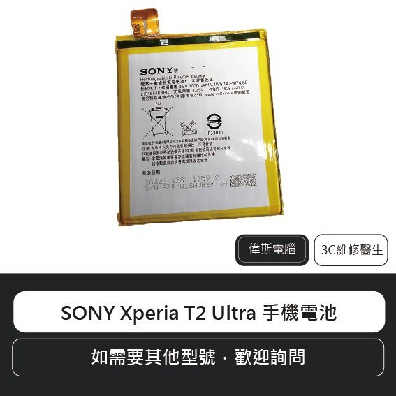 優寶購物《ubao.Tw》特貨品商城,黑貓宅配,取貨付款,☆偉斯科技☆SONY Xperia T2 Ultra D5303 索尼 手機電池 | Yahoo拍賣
