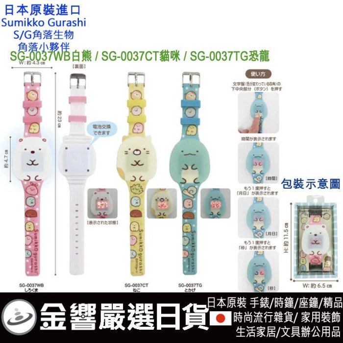 優寶購物《ubao.Tw》特貨品商城,黑貓宅配,取貨付款,【金響日貨】現貨,日本原裝,角落生物 SG-0037WB,SG-0037CT,SG-0037TG,角落小夥伴,發光電子錶 | Yahoo拍賣