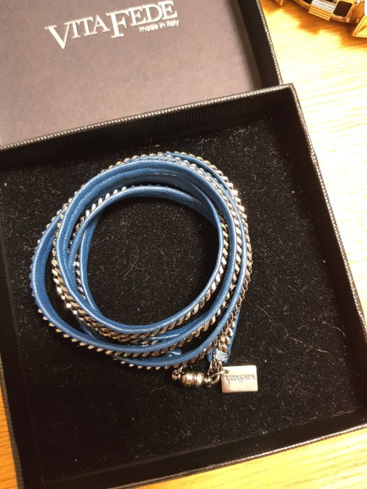 優寶購物《ubao.Tw》特貨品商城,黑貓宅配,取貨付款,vitafede 絶版商品 霧黑鍊藍色 5環 皮手環 | Yahoo拍賣