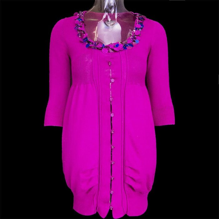 優寶購物《ubao.Tw》特貨品商城,黑貓宅配,取貨付款,知名設計品牌IROO紫紅色亮片抓褶七分袖長版針織衫 36號 | Yahoo拍賣