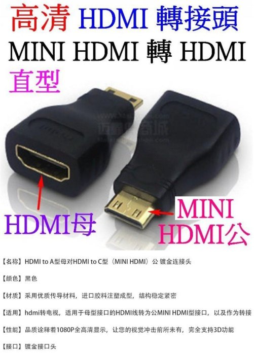 優寶購物《ubao.Tw》特貨品商城,黑貓宅配,取貨付款,【購生活】高清 MINI HDMI公轉HDMI母 HDMI轉接頭 直型 1.4版 1080P HDMI轉換頭 | Yahoo拍賣