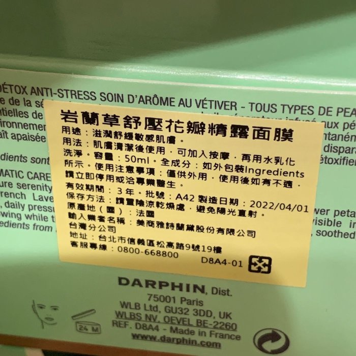 優寶購物《ubao.Tw》特貨品商城,黑貓宅配,取貨付款,💕 DARPHIN 朵法 岩蘭草舒壓花瓣精露面膜 50ml 全新 現貨 | Yahoo拍賣