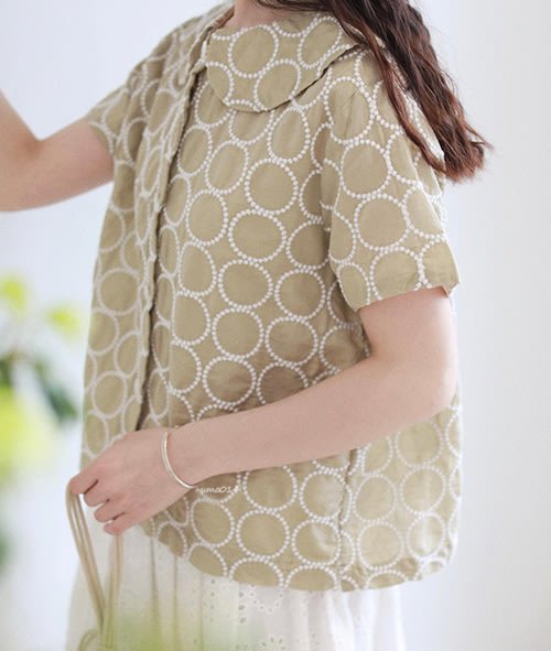 優寶購物《ubao.Tw》特貨品商城,黑貓宅配,取貨付款,|The Dood Life|MB mina perhonen / 皆川明鈴鼓花圈刺繡 彼得潘圓領 短袖襯衫 苧麻小外套 | Yahoo拍賣