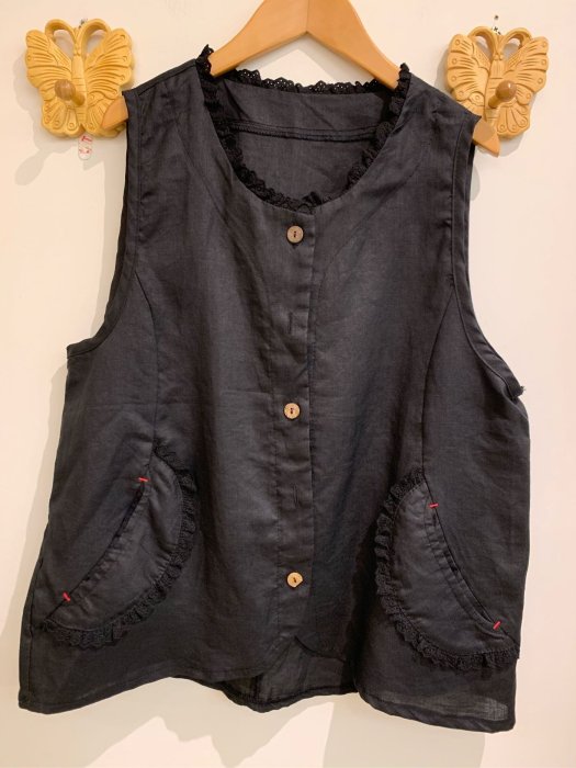 優寶購物《ubao.Tw》特貨品商城,黑貓宅配,取貨付款,【江南小舖】正韓--蕾絲領木釦麻料開釦背心****特價出清 | Yahoo拍賣