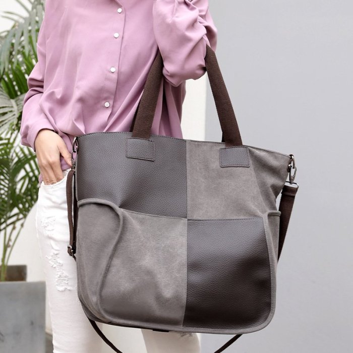 優寶購物《ubao.Tw》特貨品商城,黑貓宅配,取貨付款,肩背包帆布手提包-撞色方塊大容量托特包女包包5色73wa45☆奧莉芙☆ | Yahoo拍賣