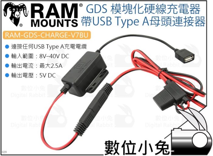 優寶購物《ubao.Tw》特貨品商城,黑貓宅配,取貨付款,數位小兔【RAM-GDS-CHARGE-V7BU GDS硬線充電器】充電線 車載電纜 帶USB Type A 母頭連接器 | Yahoo拍賣
