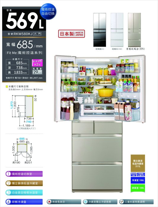 優寶購物《ubao.Tw》特貨品商城,黑貓宅配,取貨付款,☎可申請貨物稅2千HITACHI【RKW580KJ】日立日本製六門琉璃569L~魔術控溫可全冷凍或全冷藏 | Yahoo拍賣