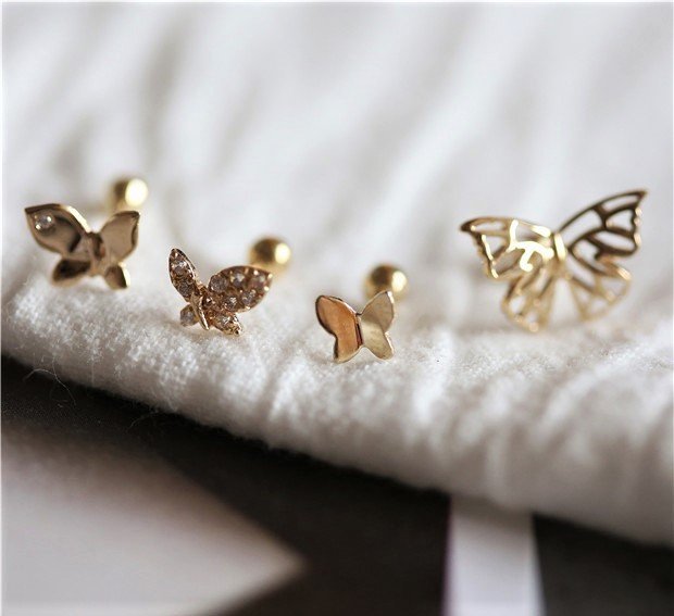 優寶購物《ubao.Tw》特貨品商城,黑貓宅配,取貨付款,LA MIMOSA韓國正品 鏤空大蝴蝶耳環 金珠螺絲耳骨釘 純10K黃金 永不褪色 抗過敏可以戴著洗澡 | Yahoo拍賣