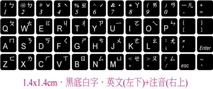 優寶購物《ubao.Tw》特貨品商城,黑貓宅配,取貨付款,◎訂製鍵盤貼紙~優質品,不反光筆記型鍵盤.英文(左下)+注音(右上).尺寸:1.4x1.4cm-黑底白字 | Yahoo拍賣