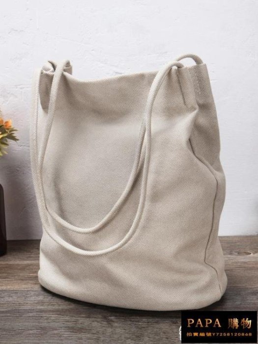 優寶購物《ubao.Tw》特貨品商城,黑貓宅配,取貨付款,(周一周四在線)帆布包包 帆布包文藝單肩水桶包簡約原宿風棉麻布袋米白色 | Yahoo拍賣