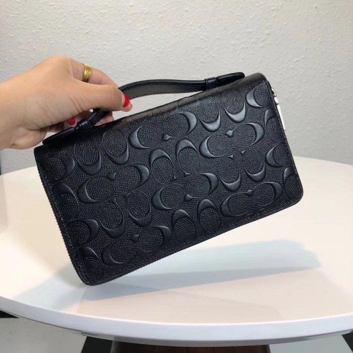 優寶購物《ubao.Tw》特貨品商城,黑貓宅配,取貨付款,(Outlet特惠)COACH 93425 新款男士浮雕壓C雙層手拿包 雙拉鏈隔層 附代購憑證 | Yahoo拍賣
