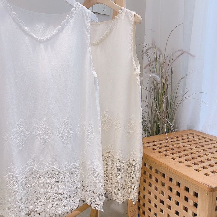 優寶購物《ubao.Tw》特貨品商城,黑貓宅配,取貨付款,棉麻系列甜美小清新鏤空水溶刺繡下擺棉麻純色背心寬鬆打底女 | Yahoo拍賣