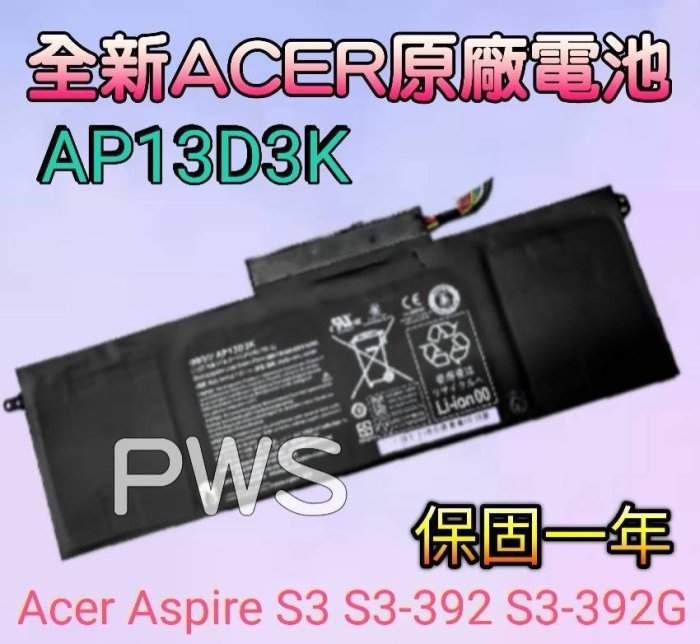 優寶購物《ubao.Tw》特貨品商城,黑貓宅配,取貨付款,☆【全新 宏碁 ACER AP13D3K 原廠電池】☆Aspire S3 S3-392 S3-392G | Yahoo拍賣