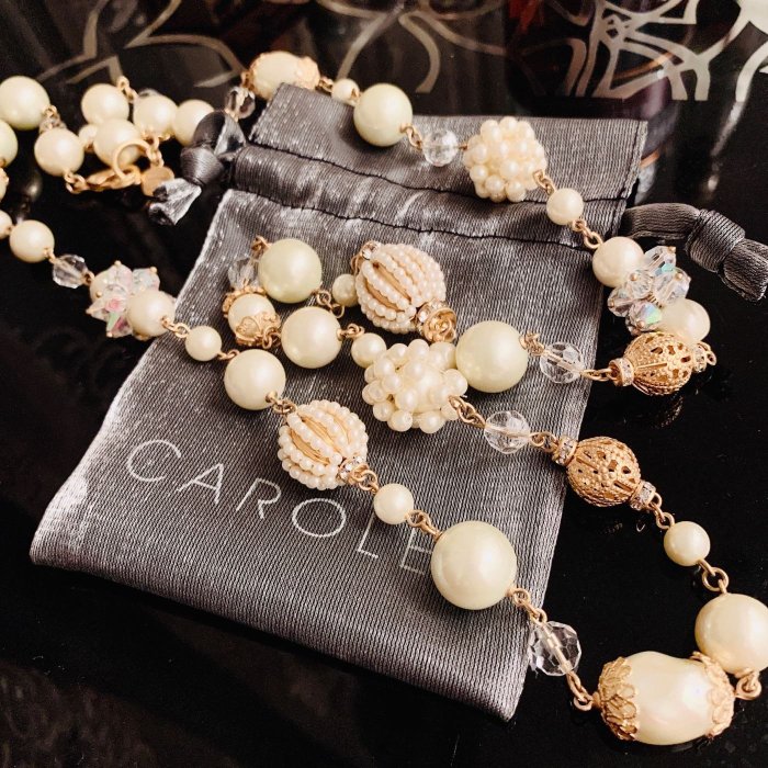 優寶購物《ubao.Tw》特貨品商城,黑貓宅配,取貨付款,美國紐約專櫃品牌CAROLEE宮廷歐式復古燙金小香風好美滿載珍珠古典稀有款香奈兒風格華麗典雅優雅氣質百搭珍珠簍空花盤圓球 毛衣項鍊長項鍊華麗貴氣質感佳 | Yahoo拍賣