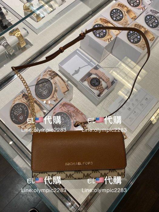 優寶購物《ubao.Tw》特貨品商城,黑貓宅配,取貨付款,EL~MK 38S9CTTC1V 駝色 滿版 PVC配防刮皮革 斜背包(可當長夾) 現貨 附購買收據 3380 | Yahoo拍賣