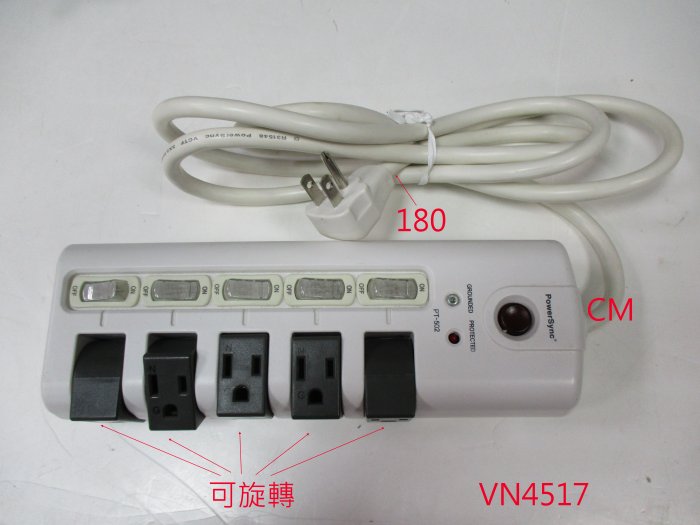 優寶購物《ubao.Tw》特貨品商城,黑貓宅配,取貨付款,【全冠】群加 15A125V1650W 粗線 安規 180公分 5開5插防雷擊旋轉延長線 PT-502(VN4517) | Yahoo拍賣