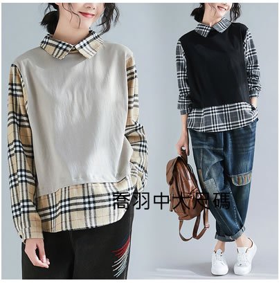 優寶購物《ubao.Tw》特貨品商城,黑貓宅配,取貨付款,現貨喬羽假二件撞色拚接格子寬鬆襯衫BK201005~A12-1 | Yahoo拍賣