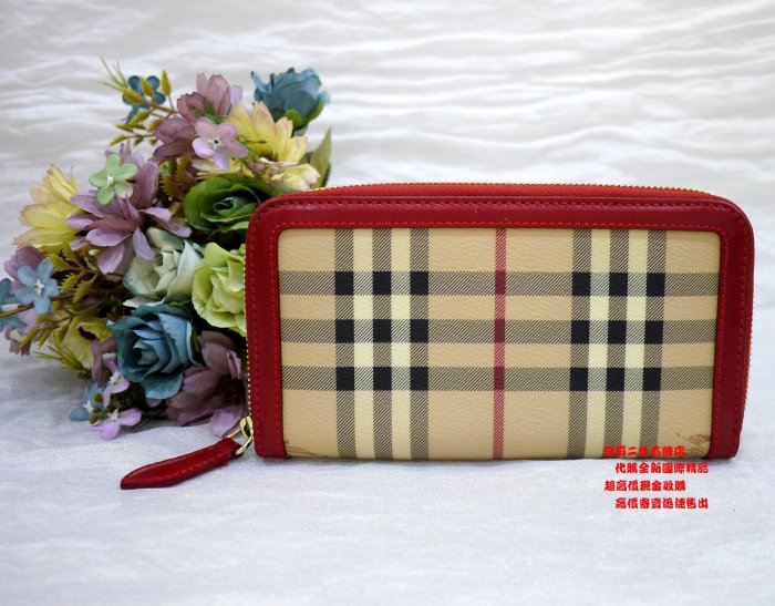優寶購物《ubao.Tw》特貨品商城,黑貓宅配,取貨付款,優買二手精品名牌店 BURBERRY 紅 牛皮 騎士 戰馬 格紋 PVC 拉鍊 零錢 信用卡 長夾 皮夾 發財 夾 特價II | Yahoo拍賣