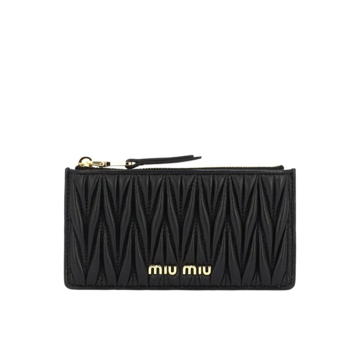 優寶購物《ubao.Tw》特貨品商城,黑貓宅配,取貨付款,【折扣預購】21春夏正品Miu Miu經典皺褶黑色小羊皮革拉鍊零錢包 信用卡夾包 5MB006 | Yahoo拍賣