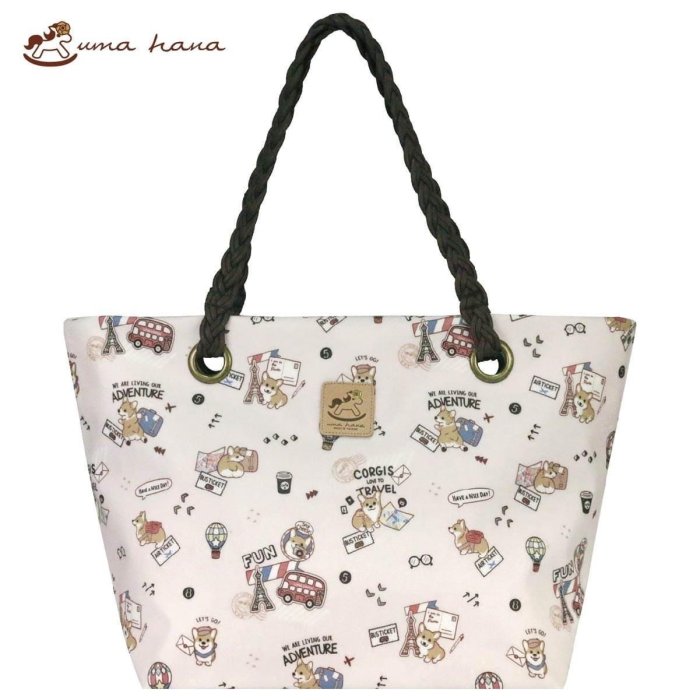 優寶購物《ubao.Tw》特貨品商城,黑貓宅配,取貨付款,uma hana 防水包 艾瑪 台南實體店面 編織包 T10 粉旅行柯基 肩背包 台灣製造 印花款 | Yahoo拍賣