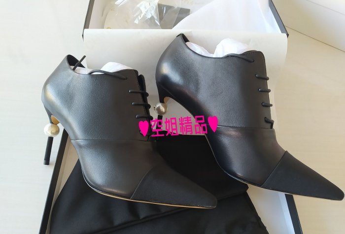 優寶購物《ubao.Tw》特貨品商城,黑貓宅配,取貨付款,♥空姐精品♥實品拍攝 秋冬特價 小香經典走秀款 真皮羊皮拼接後跟珍珠尖頭高跟鞋 短靴 香奶奶踝靴 | Yahoo拍賣