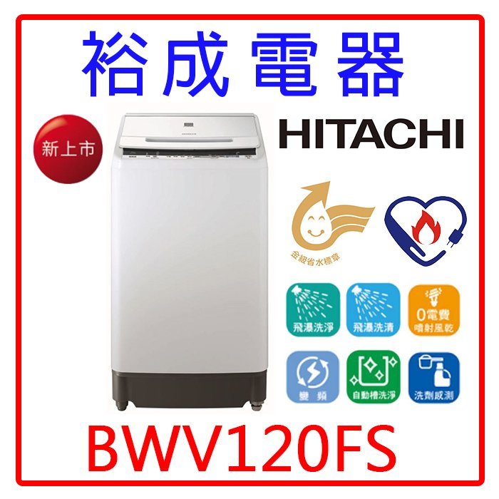 優寶購物《ubao.Tw》特貨品商城,黑貓宅配,取貨付款,【裕成電器‧電洽很便宜】HITACHI 日立 12公斤洗劑感測洗衣機BWV120FS 另售 SF130TCV | Yahoo拍賣