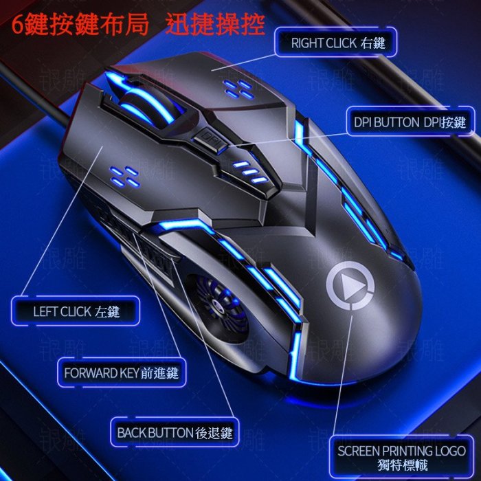 優寶購物《ubao.Tw》特貨品商城,黑貓宅配,取貨付款,【天馬行銷】銀雕6鍵式3200DPI電競七彩呼吸燈USB光學滑鼠 | Yahoo拍賣