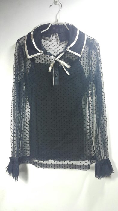 優寶購物《ubao.Tw》特貨品商城,黑貓宅配,取貨付款,蜜彩BABY熊※專櫃瓊安黑色蕾絲點點蝴蝶結兩件式長袖上衣 | Yahoo拍賣