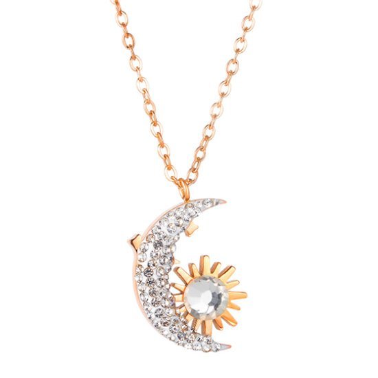 優寶購物《ubao.Tw》特貨品商城,黑貓宅配,取貨付款,《QBOX 》FASHION 飾品【C20N1850】精緻秀氣月亮太陽鑲鑽玫瑰金鈦鋼墬子項鍊 | Yahoo拍賣