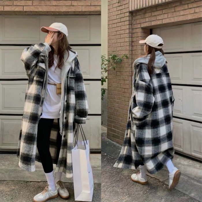 優寶購物《ubao.Tw》特貨品商城,黑貓宅配,取貨付款,慵懶隨性〰️格子 厚實毛呢顯瘦 長版外套 襯衫 | Yahoo拍賣