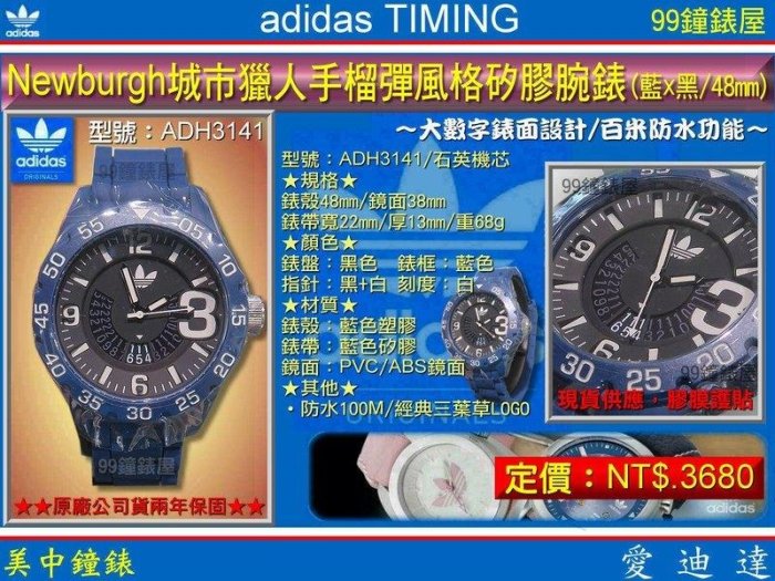 優寶購物《ubao.Tw》特貨品商城,黑貓宅配,取貨付款,【99鐘錶屋】adidas Timing愛迪達電子錶:《城市獵人手榴彈風格矽膠腕錶》藍x黑/ 48㎜/ADH3141 | Yahoo拍賣