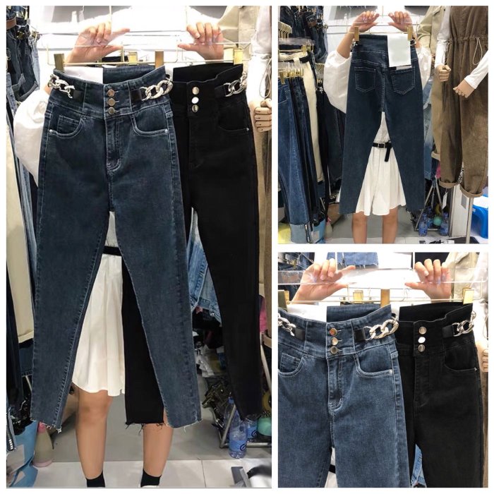 優寶購物《ubao.Tw》特貨品商城,黑貓宅配,取貨付款,鏈條設計 高腰顯瘦牛仔褲 👖 | Yahoo拍賣