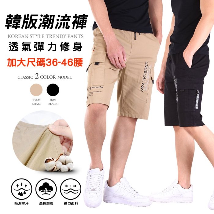 優寶購物《ubao.Tw》特貨品商城,黑貓宅配,取貨付款,CS衣舖 加大尺碼 韓版工裝短褲 高彈力 修身 伸縮腰圍 休閒短褲 兩色 #0967 | Yahoo拍賣