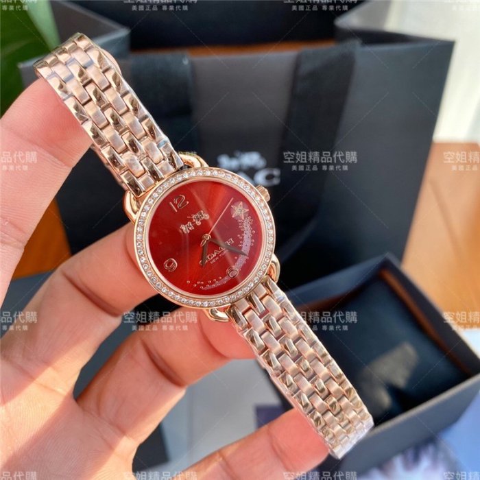 優寶購物《ubao.Tw》特貨品商城,黑貓宅配,取貨付款,空姐代購 COACH 14501753 星空紅面鋼帶款 女士腕錶 手錶 水晶手錶 鏈式精鋼錶帶 表圈鑲嵌施華洛世奇水晶 | Yahoo拍賣