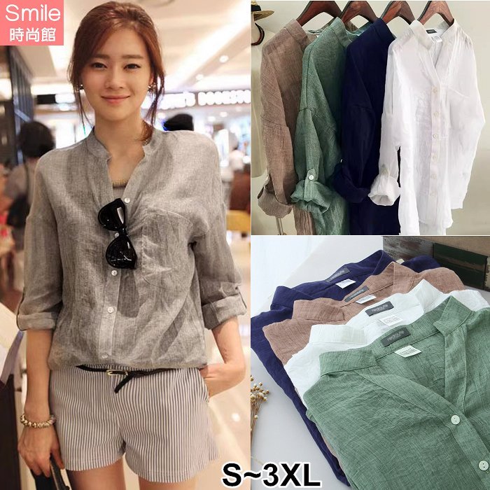 優寶購物《ubao.Tw》特貨品商城,黑貓宅配,取貨付款,【V3845】SMILE- 城市漫遊.純色薄款防曬亞麻V領七分袖襯衫/外套 | Yahoo拍賣