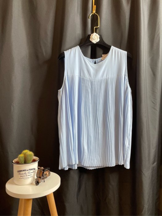 優寶購物《ubao.Tw》特貨品商城,黑貓宅配,取貨付款,CK水藍色百摺雪紡無袖上衣/Calvin Klein/百貨專櫃/1034🌼ha.haliday🌼 | Yahoo拍賣
