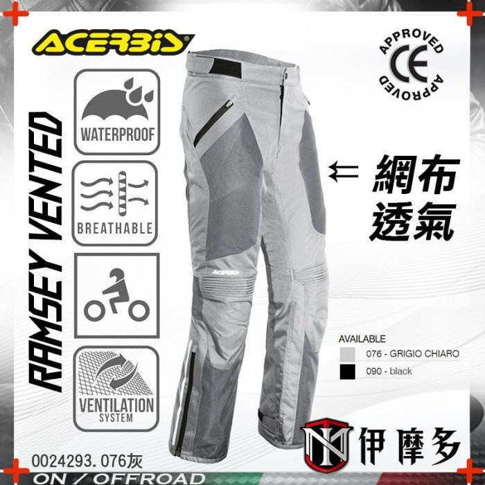 優寶購物《ubao.Tw》特貨品商城,黑貓宅配,取貨付款,伊摩多義大利Acerbis多功能防摔褲ADV網布防水內裏CE護膝重機出遊旅行RAMSEY VENTED 0024293 076灰 | Yahoo拍賣