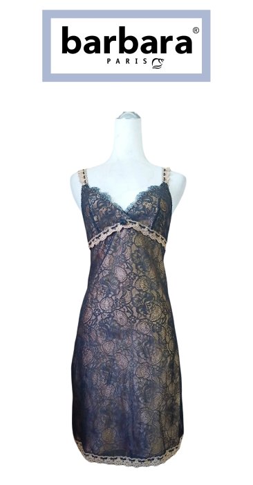 優寶購物《ubao.Tw》特貨品商城,黑貓宅配,取貨付款,都會名牌~【barbara】外層黑色蕾絲 亮駝色性感睡衣 M~ AU6 | Yahoo拍賣