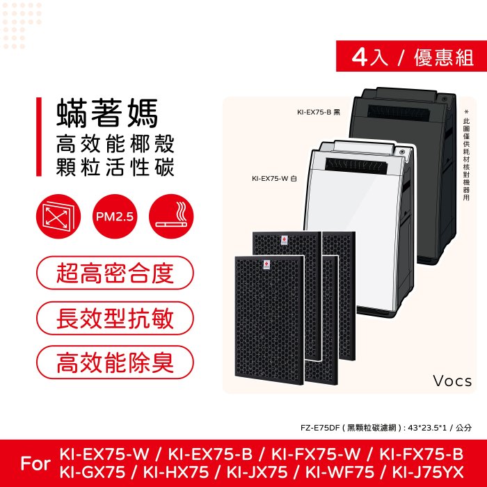 優寶購物《ubao.Tw》特貨品商城,黑貓宅配,取貨付款,四入免運 蟎著媽 副廠濾網 適 夏普 SHARP FZ-E75DF KI-FX75 KI-EX75 KI-GX75 | Yahoo拍賣