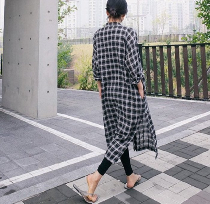 優寶購物《ubao.Tw》特貨品商城,黑貓宅配,取貨付款,(老銀屋)秋裝帥氣潮流格紋長版襯衫/寬鬆顯瘦開叉連衣裙 | Yahoo拍賣