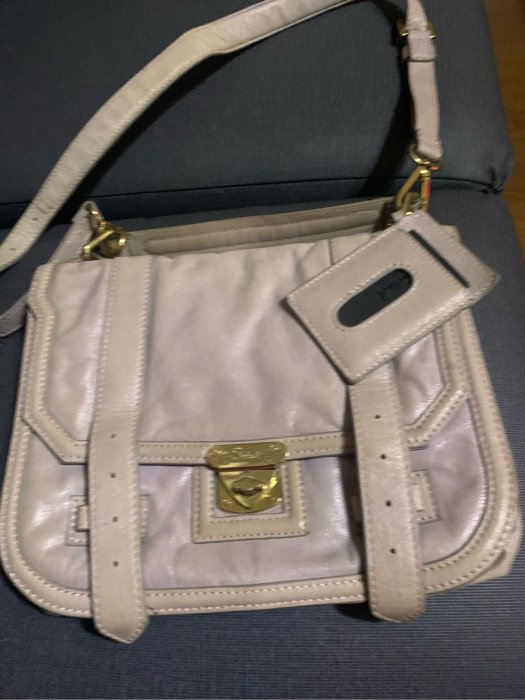 優寶購物《ubao.Tw》特貨品商城,黑貓宅配,取貨付款,agnes b.舖 專櫃 買真品 真皮 salad 斜背包 芋色斜背 郵差包 絕版款 霧金 小牛皮 尺寸22x26x9cm(櫃床白757袋) | Yahoo拍賣