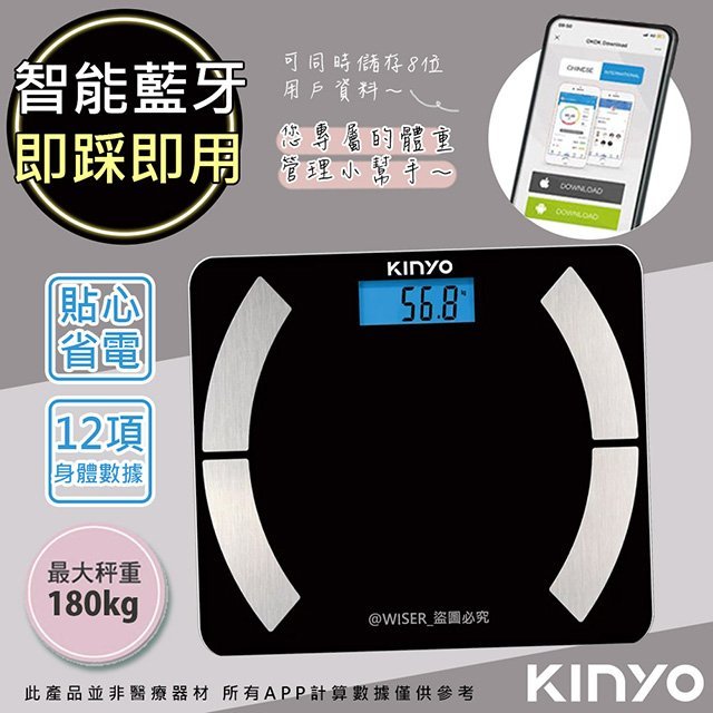 優寶購物《ubao.Tw》特貨品商城,黑貓宅配,取貨付款,KINYO 耐嘉 DS-6590 藍牙健康管理體重計 | Yahoo拍賣