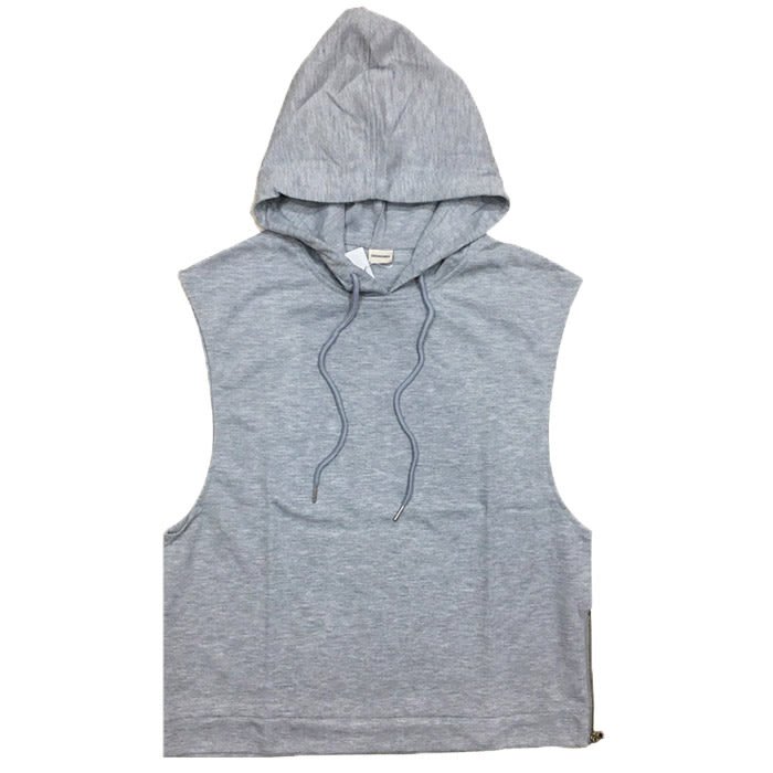 優寶購物《ubao.Tw》特貨品商城,黑貓宅配,取貨付款,。小虎.挖寶庫。全新高質感灰色無袖坎肩連帽背心T恤。素色砍肩背心連帽T。無袖連帽運動背心。健身背心穿搭。側邊拉鍊雙開。 | Yahoo拍賣