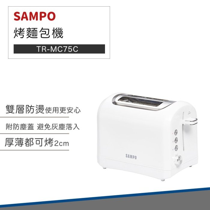 優寶購物《ubao.Tw》特貨品商城,黑貓宅配,取貨付款,【快速出貨】SAMPO 聲寶 厚片 防燙 烤麵包機 TR-MC75C 土司機 麵包機 早餐 | Yahoo拍賣