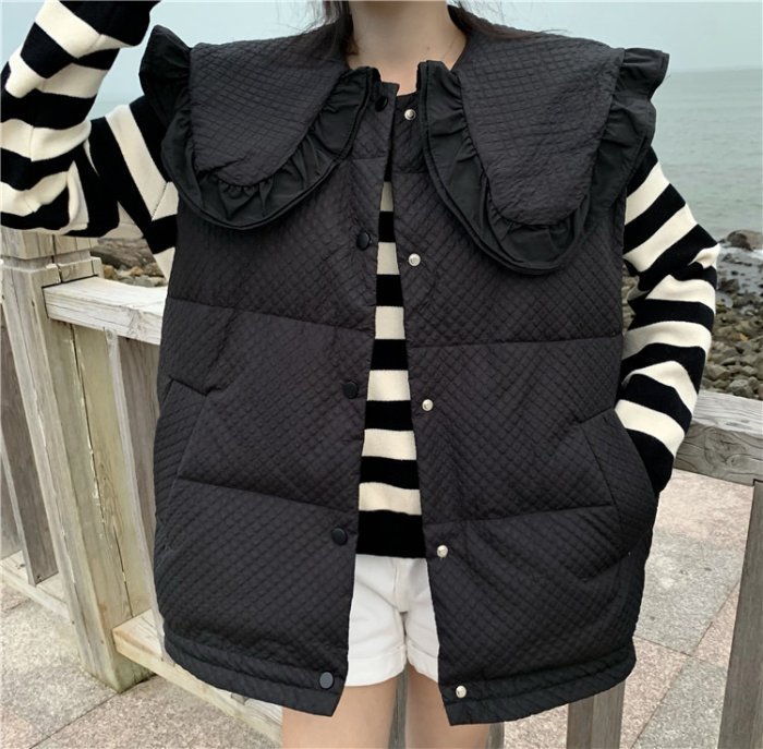 優寶購物《ubao.Tw》特貨品商城,黑貓宅配,取貨付款,~韓系 娃娃荷葉邊領寬鬆領坎肩背心外套 | Yahoo拍賣