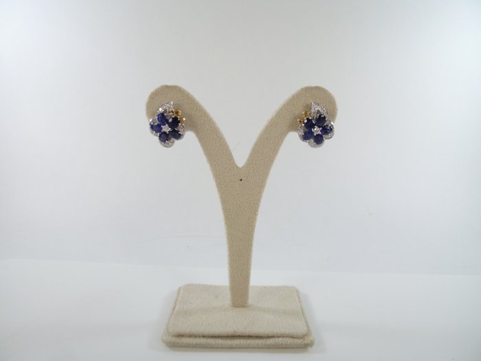 優寶購物《ubao.Tw》特貨品商城,黑貓宅配,取貨付款,[卡貝拉精品交流] 5克拉天然藍寶石耳環 夾式 花朵 造型耳環 垂墜式 14k金 天然鑽石 情人禮 生日禮 鑑定書 | Yahoo拍賣