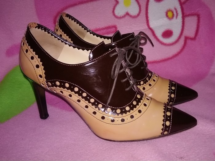 優寶購物《ubao.Tw》特貨品商城,黑貓宅配,取貨付款,甜甜妞妞小舖☆義大利名牌真品 MOSCHINO 綁帶女鞋--高跟牛津圓頭踝靴--37.5號 | Yahoo拍賣
