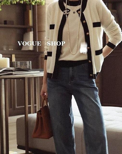 優寶購物《ubao.Tw》特貨品商城,黑貓宅配,取貨付款,貴婦小香風米白黑滾邊兩件套全毛衣外套加內搭上衣~預購M~XL SIZE | Yahoo拍賣